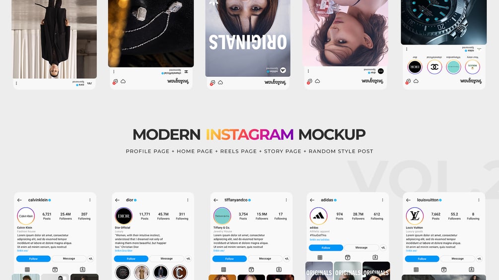 This bundle includes 19 high-quality mockups of Instagram posts, stories, and profiles, all in a modern and unique design.